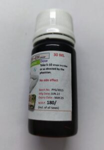 DOSE- 5-10 DROPS WITH HALF CUP WARM WATER IN A DAY OR AS DIRECTED BY THE EH PHYSICIAN.