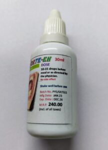 • DOSE- 10-15 DROPS WITH HALF CUP WARM WATER BEFORE MEAL OR AS DIRECTED BY THE EH PHYSICIAN.