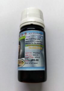 DOSE- 5-10 DROPS WITH HALF CUP WARM WATER BEFORE MEAL OR AS DIRECTED BY THE EH PHYSICIAN.