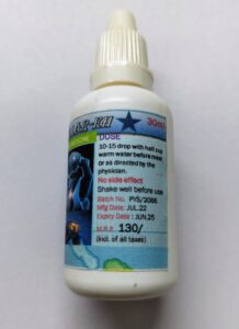 DOSE- 10-15 DROPS WITH HALF CUP WARM WATER BEFORE MEAL OR AS DIRECTED BY THE EH PHYSICIAN.