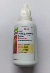 DOSE- 10-15 DROPS WITH HALF CUP WARM WATER BEFORE MEAL OR AS DIRECTED BY THE EH PHYSICIAN.