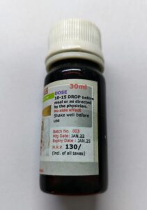 • DOSE- 10-15 DROPS WITH HALF CUP WARM WATER BEFORE MEAL OR AS DIRECTED BY THE EH PHYSICIAN.